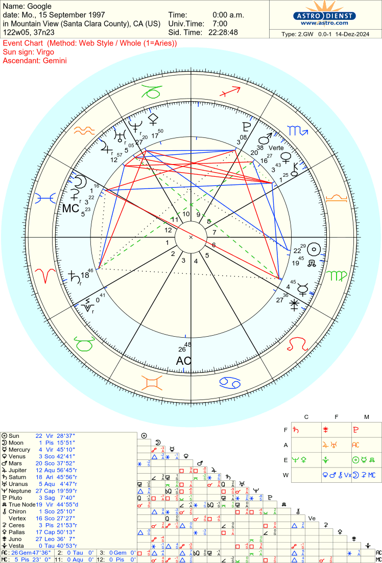 Notes: I used to use google a lot for my questions & have been slowly switching over to chatgpt now adays. For this particularly reading I have not only added uranus but also if we take a look at usa neptune it is conjunct google's sun.